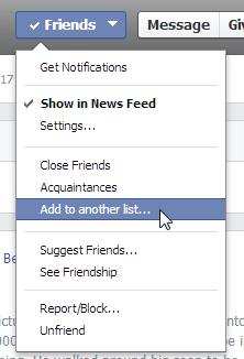 Awesome! Now you have made a new list and have added your first person to it. Now let’s continue by adding more people! You can do this in two ways. The first and (probably) easiest way would be to go to each person’s profile, clicking on the “Friends” button (like in step 1) and selecting either the “Co-workers” list (if it’s there) or by clicking on “Add to another list” and then selecting “Co-workers”.